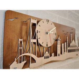 Istanbul desenli ahşap duvar saati